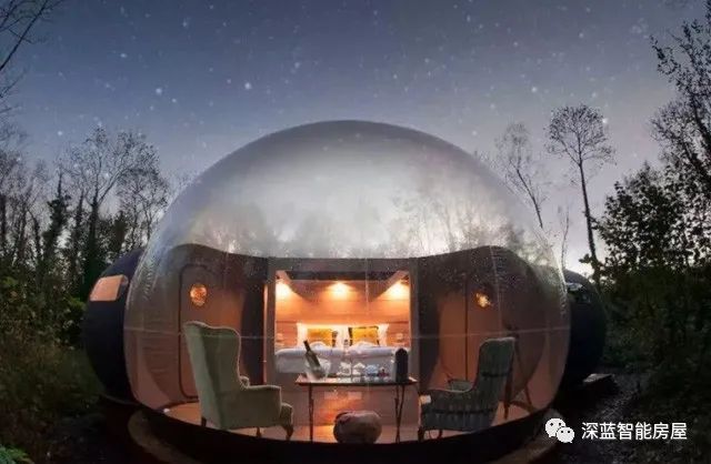 穹顶泡泡屋位于北爱尔兰恩湖的一片古老森林里,单是环境就让人激动不已,180度全透明穹顶将夜空展现一览无余。泡泡小屋除了梦幻的外形外,屋内的设施也是下了一番心思,里面定制家具、温热式床垫、干净的淋浴包括浴缸统统都有。